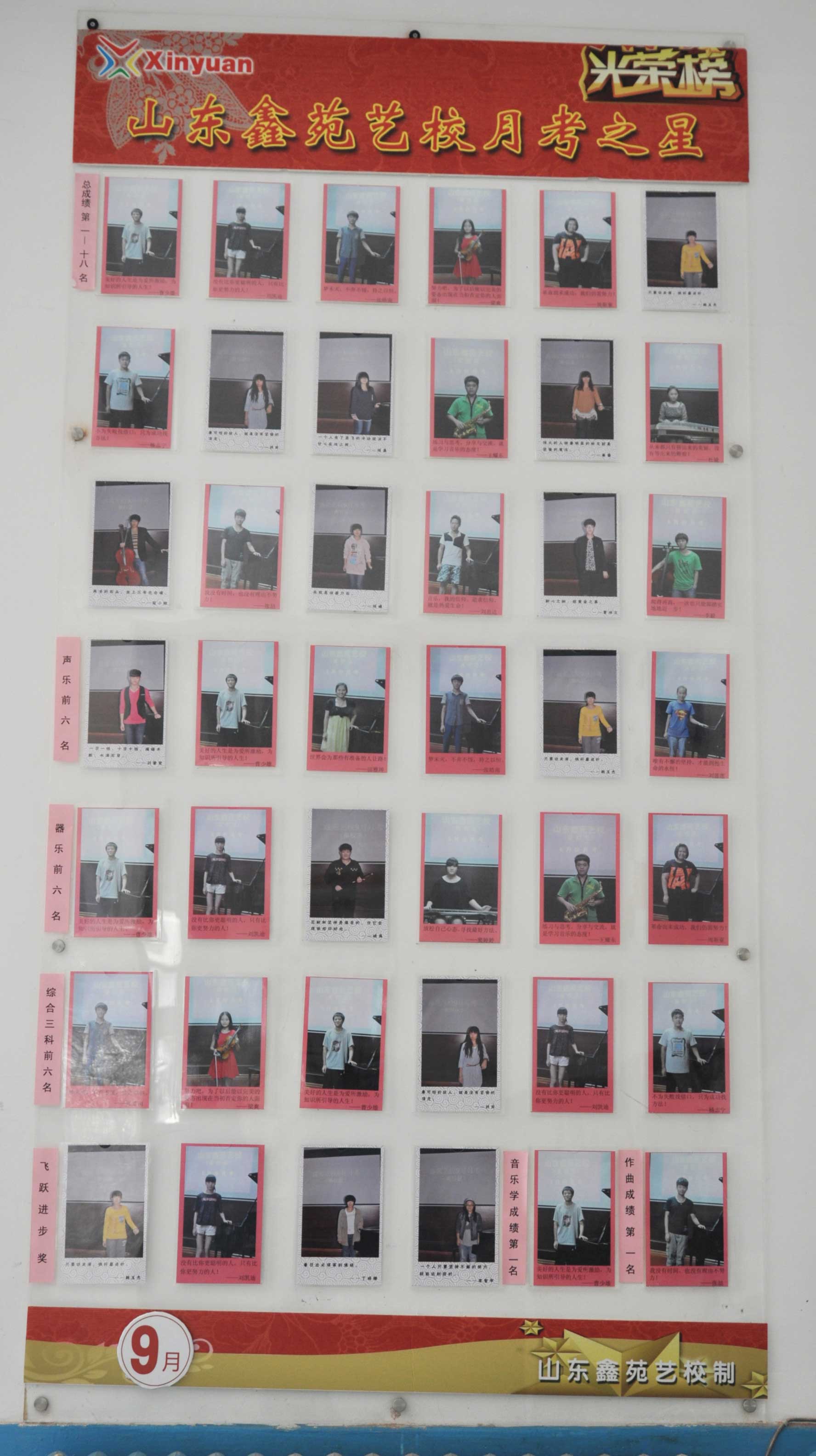 鑫苑艺校九月份月考成绩及光荣榜