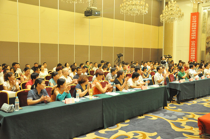 在家长交流环节,2014届优秀学员胡小彤和楼业达的家长就自己的家庭教育理念进行发言,发言中都提及到对鑫苑艺校全体师生的感谢。