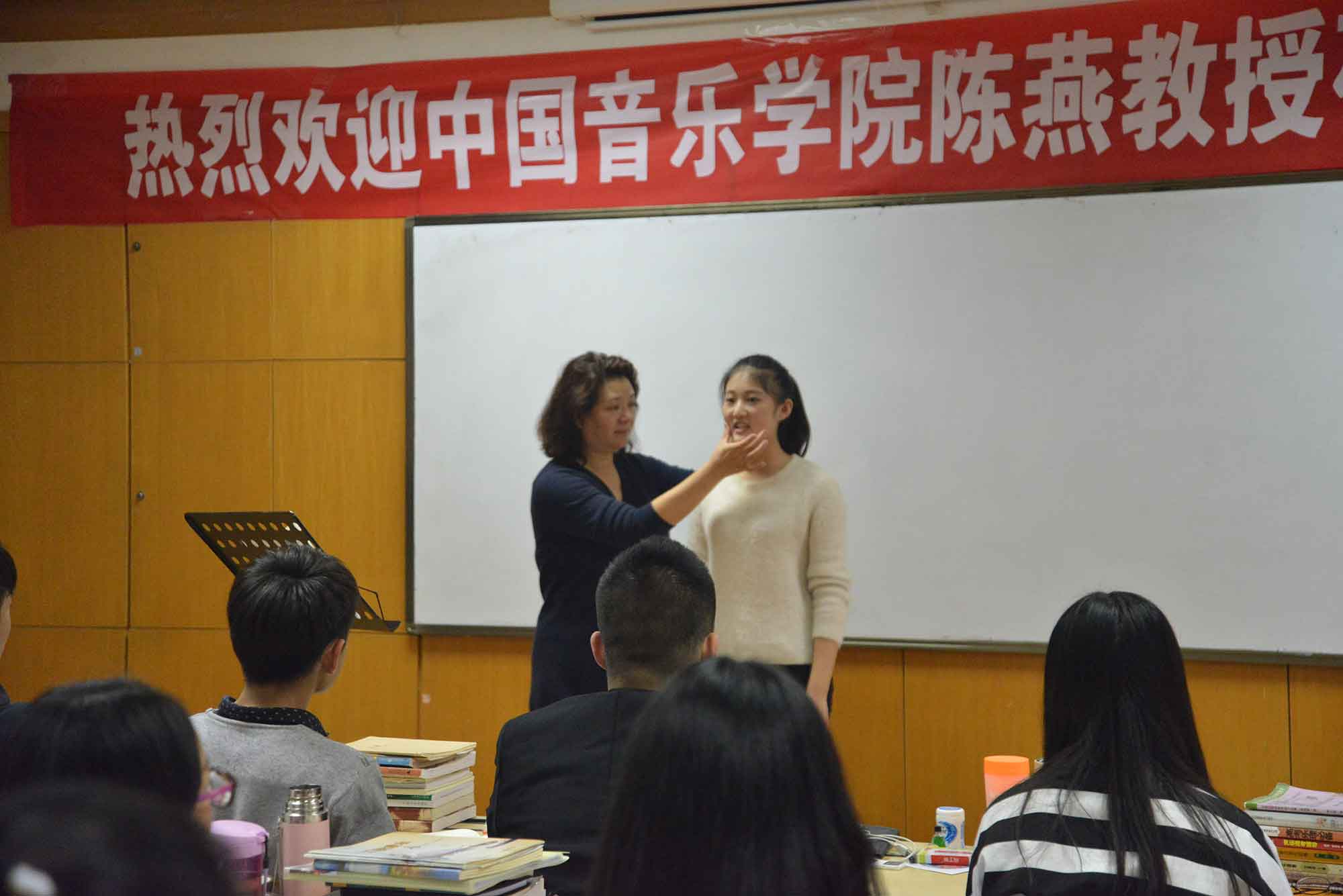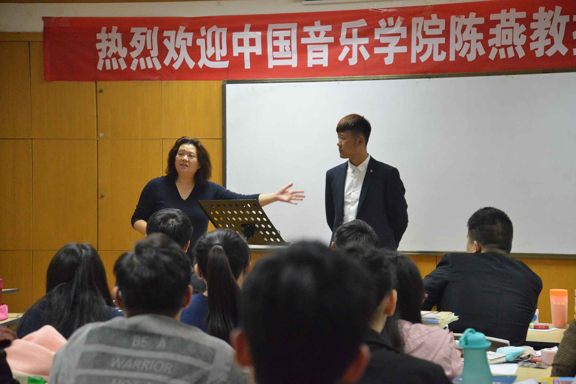 2016年11月5日,著名声乐教师、中国音乐学院声歌系教授、硕士研究生导师陈燕应邀来我校讲学。