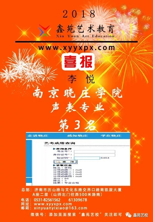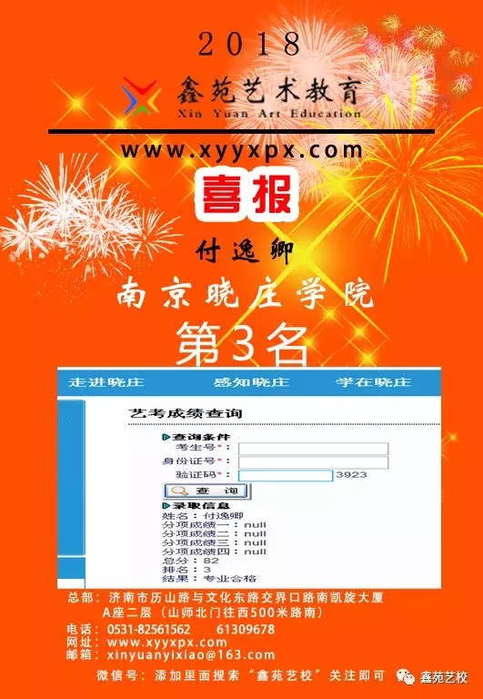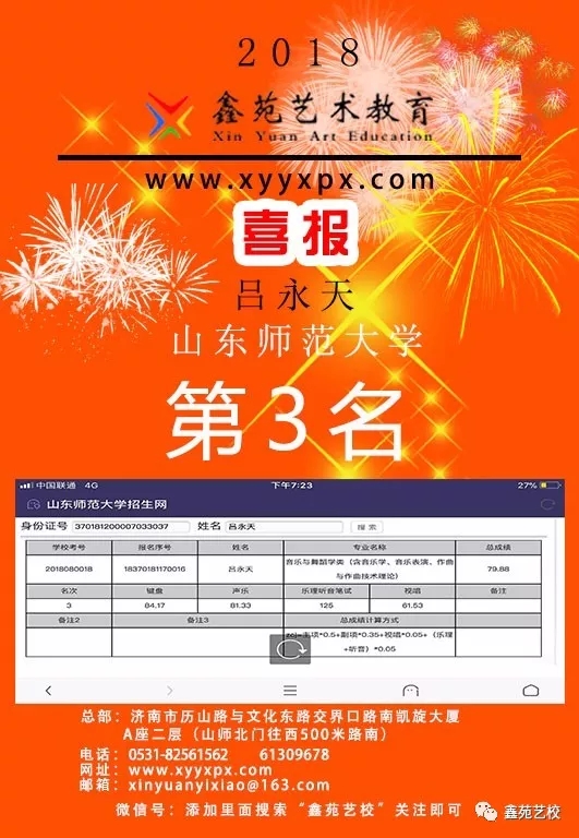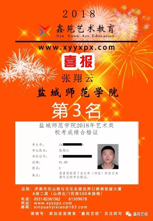 鑫苑艺术教育,携一往无前的气势,做首屈一指的艺术教育领导者,我们的承诺和我们的品牌实力,始终表里如一。在已经过去的2018年艺考,鑫苑艺术教育不负众望,再次取得辉煌的成绩,截止到4月10号,共有8名鑫苑学子从几千名考生中脱颖而出,取得招生高校的专业第3名,精彩依然继续,敬请期待…………