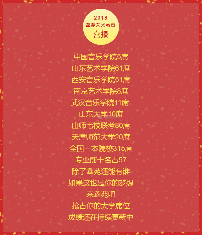 《名家 名师 名校》系列活动之《山东省艺术高考新动向解析暨艺术专业潜能指导咨询会》即将在济南鑫苑艺术教育山师校区盛大开启,中国音乐学院大咖周强副教授空降鑫苑莅临指导。直面名师,定位自己,相约济南,圆梦2019。选择现在就是选择未来!
