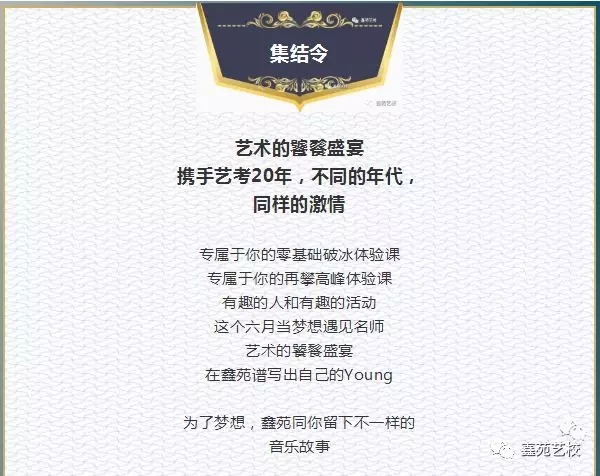 6月5-9日,鑫苑50余名艺考教师带你走进鑫苑艺术饕餮盛宴,不仅有声乐/器乐/舞蹈专题讲座,艺考咨询,艺考学习规划指导……还有各类新奇精彩艺术趴活动……更有神秘大礼包派送。还等什么,6月5日,我们在济南等着你,在这个6月为你圆梦。