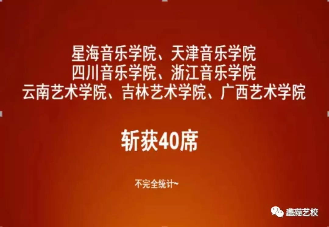 喜报!喜报!截止到今天,鑫苑艺术教育2018年艺考成绩再创新高,我校取得了5个中国音乐学院的小圈专业合格证,51个西安音乐学院专业合格证,62个山东艺术学院专业合格证,80个山东师范大学七校联考专业合格证,20个天津师范大学专业合格证,12个沈阳音乐学院专业合格证,11个武汉音乐学院专业合格证,10个南京艺术学院专业合格证,10个山东大学专业合格证,另外天津音乐学院,星海音乐学院,四川音乐学院、广西艺术学院、吉林艺术学院、云南艺术学院等几所音乐、艺术学院也有40近人取得专业合格证。目前我们取得了92个招生院校前10名的专业证,其中沈阳音乐学院音乐学、音乐剧、艺术史论三个专业第一名,中国石油大学单簧管和大提琴双专业第一名、重庆大学声乐表演第一名,第二名都出自我们学校。目前我们已经取得了近350余张一本大学的专业合格证。后面陆续公布的成绩也会有非常好的预期。