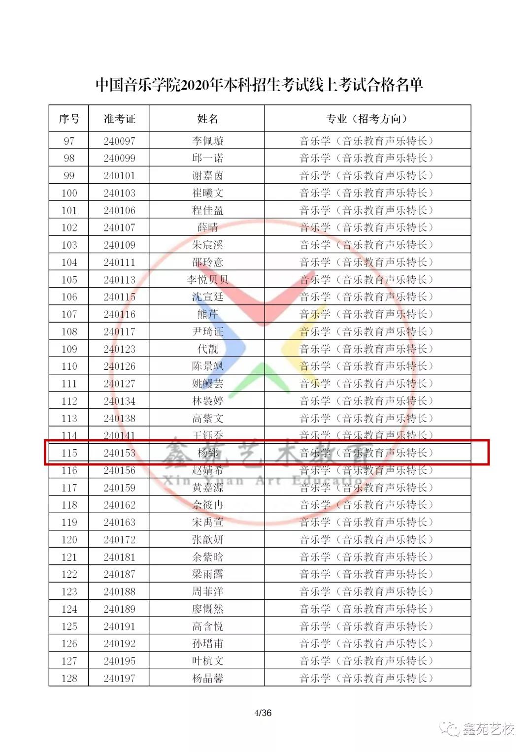入围中国音乐学院12席