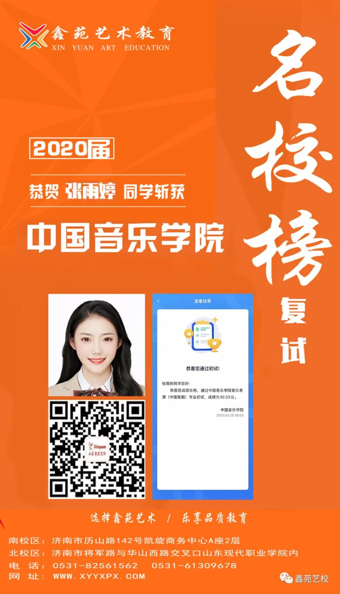 鑫苑艺术教育2020届优秀学子张玉青、杨郅、薛晴、姜璐、晁杨、田明泽、宋禹萱、张齐舞墨斩获中国音乐学院专业合格证,田浩然、桑瑞彤、张雨婷、段文浩成功进入专业复试!